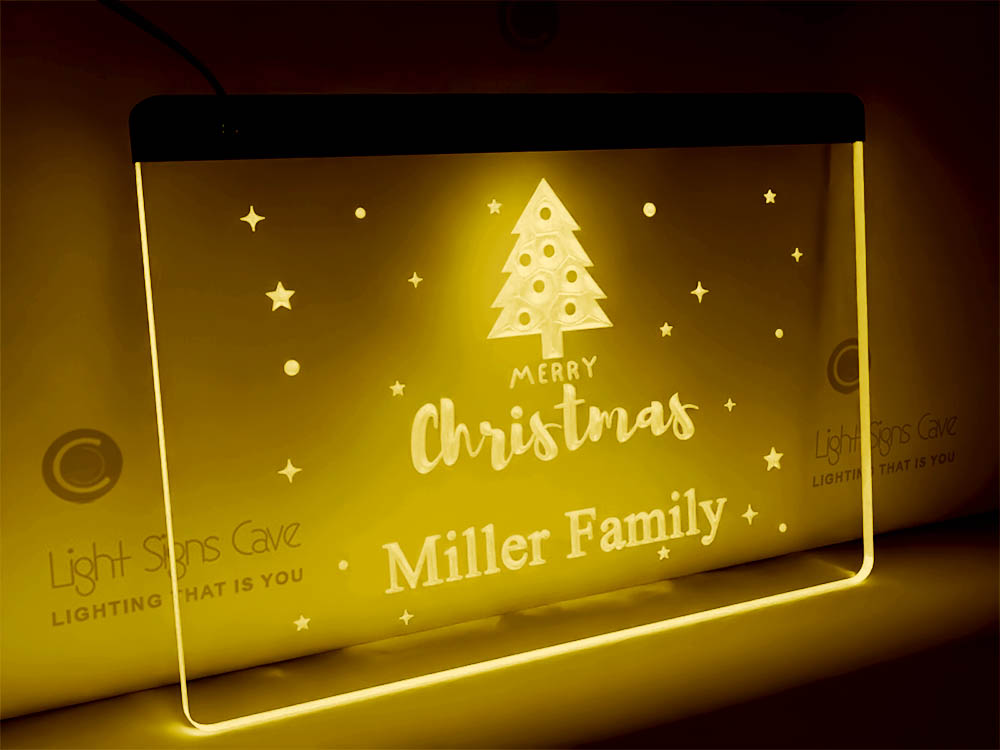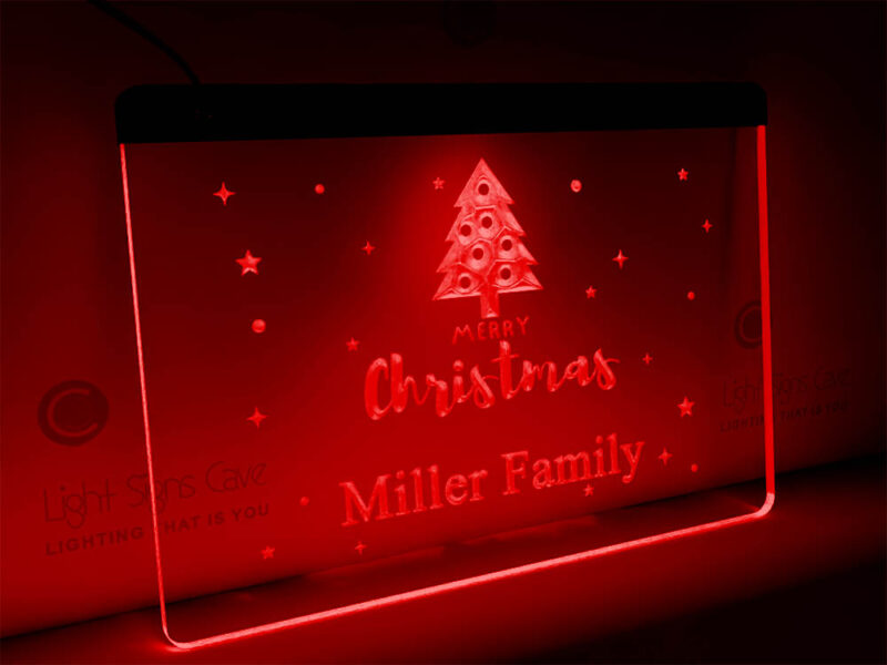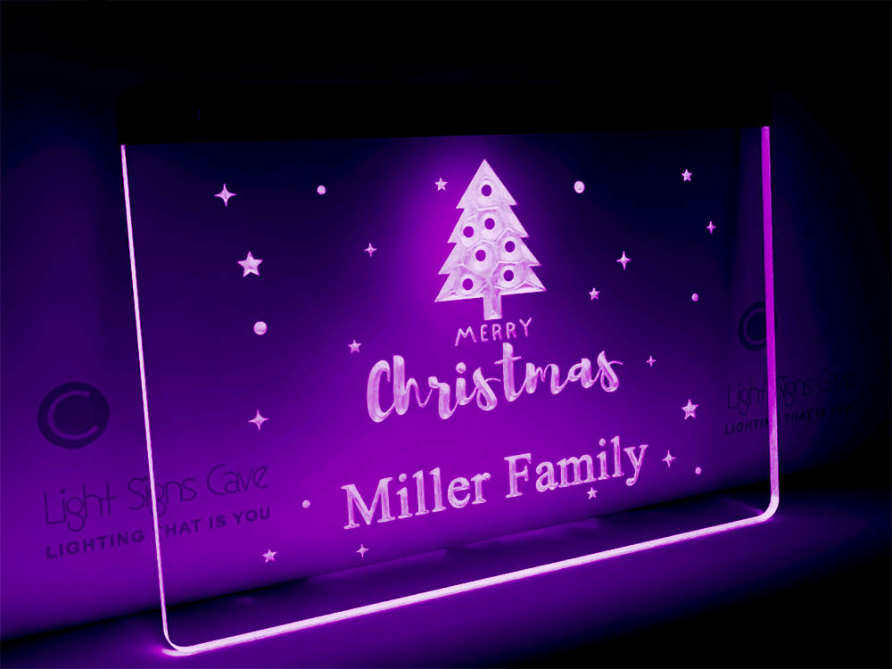 Family name merry christmas lit sign